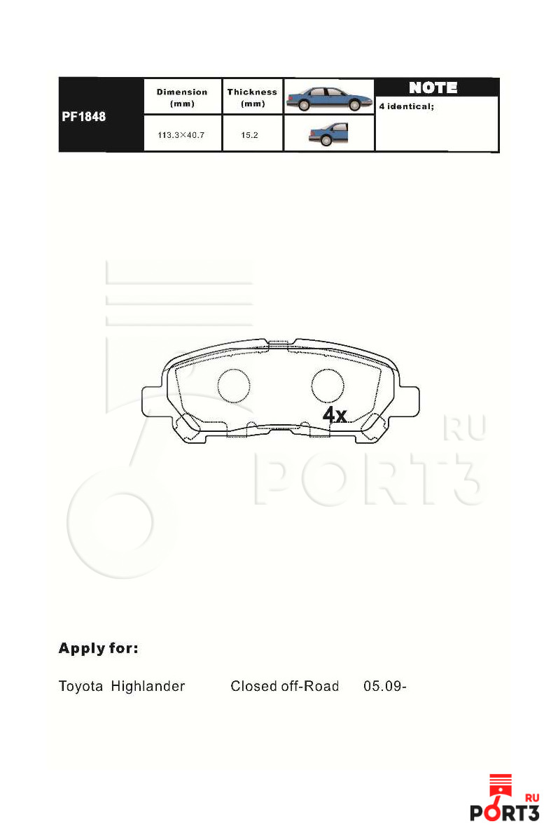 Колодки TOYOTA Highlander (2009-2013) задние