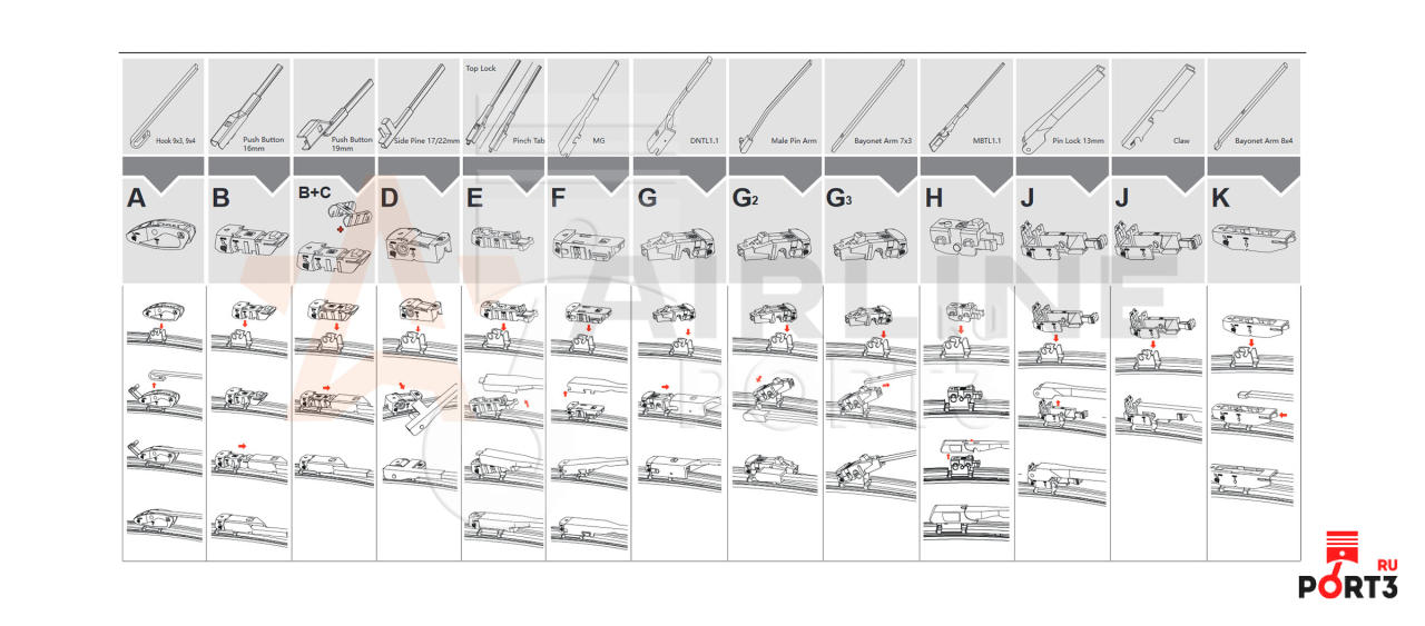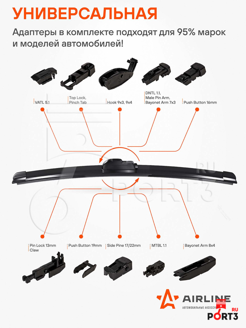 Щетка стеклоочистителя бескаркасная Airline 19/475 мм 8 переходников