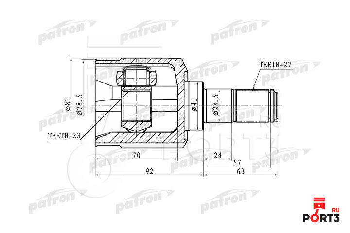 Шрус внутренний левый 25x41x27
