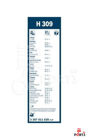 Щетка с/о зад.стекла BOSCH 3397011630 /H309/ Plastic Lexus LX450/570 /Toyota Auris/Avensis/RAV-4/Yaris300мм