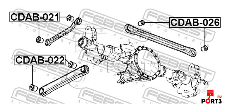 Сайлентблок задней нижней продольной тяги CADILLAC ESCALADE (4WD) 1997-2017 [EU] FEBEST CDAB-022