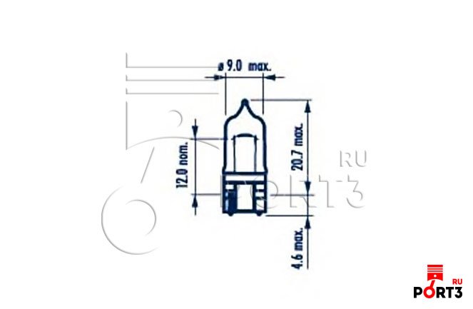 Лампа W5W 12V W2.1X9.5D BLUE