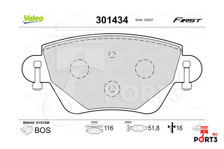 Комплект тормозных колодок, дисковый тормоз VALEO (Валео) 301434