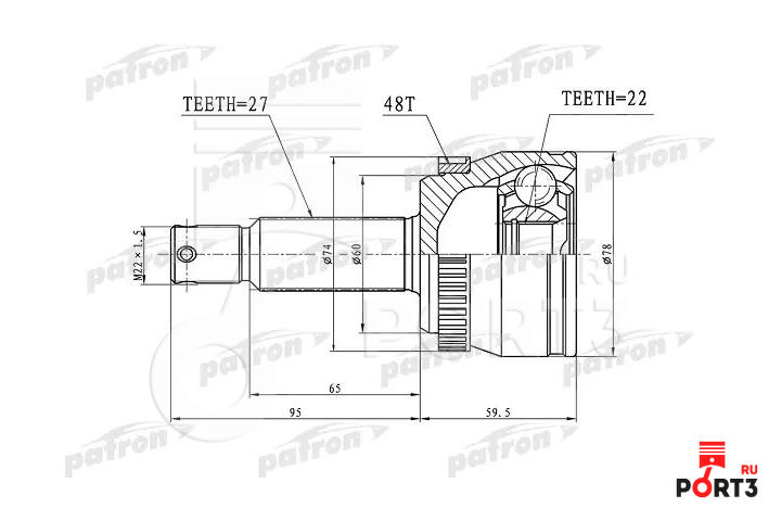 ШРУС НАРУЖНЫЙ ЗАДНИЙ KIA SPORTAGE (06-…) ZZVF ZVRC359
